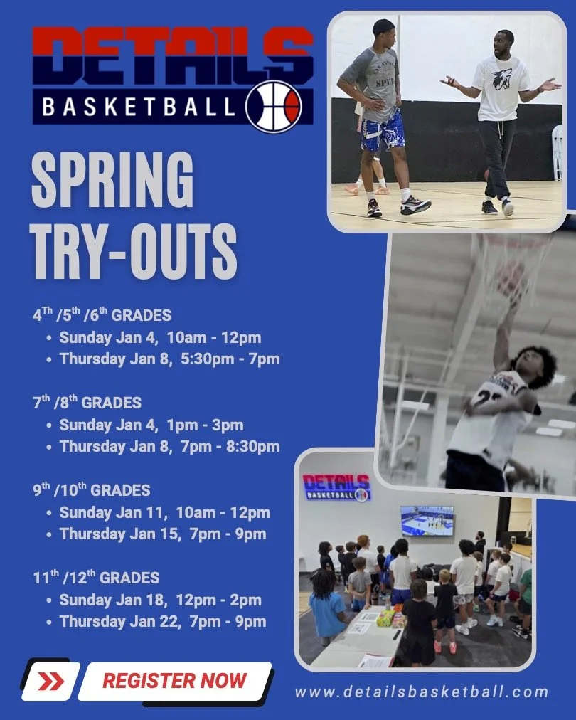 Details Basketball and Coach Tishaun Jenkins are excited to announce our Spring 2026 AAU Tryouts. The cost to tryout will be $30. All tryouts will take place at Details HQ in Leicester, MA.